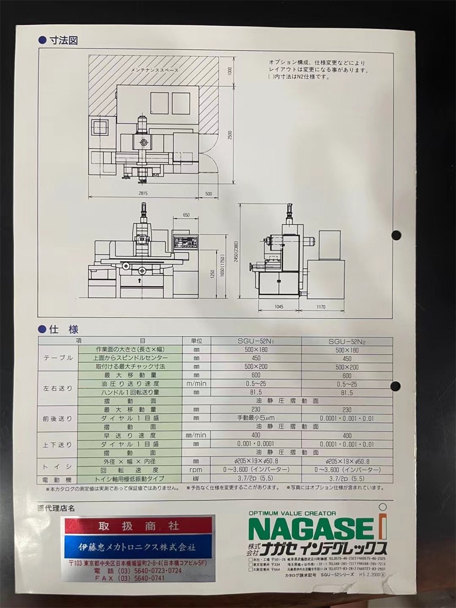 日本长濑超SUG52 HP2成形超高精度平面磨床