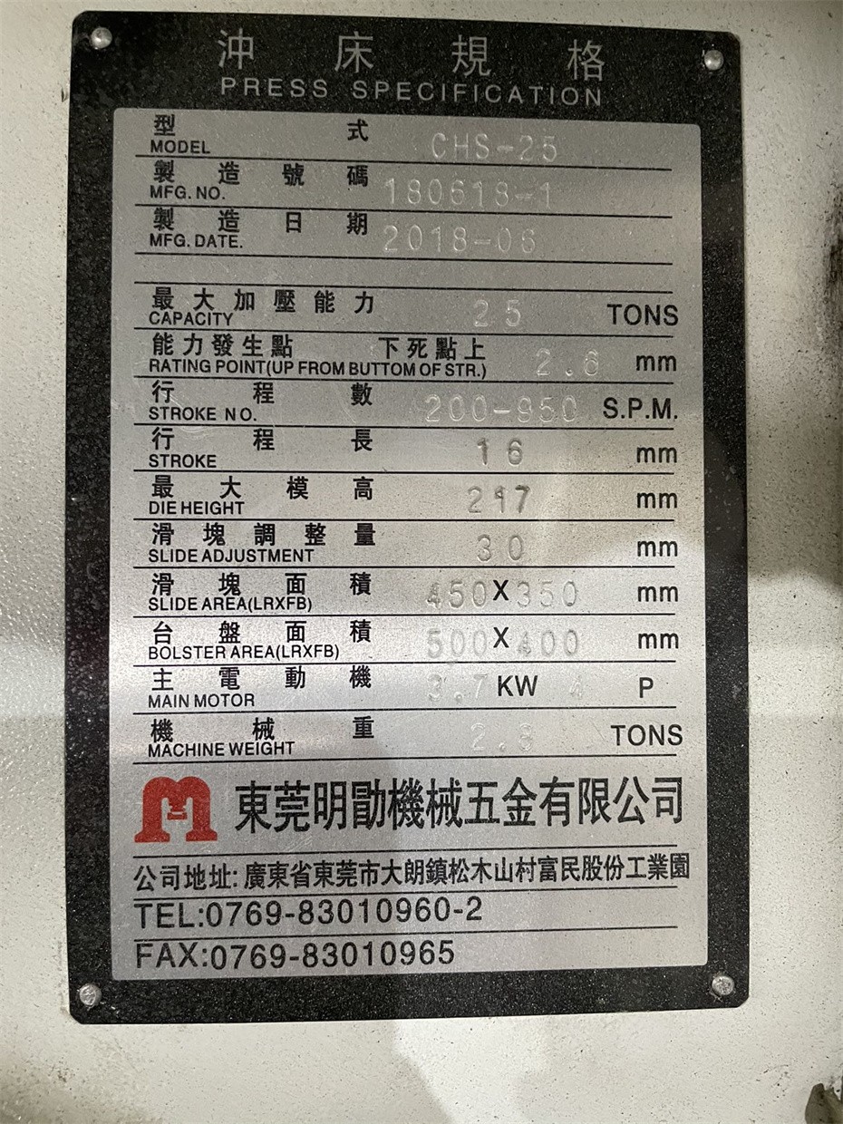 明勖25吨龙门高速冲