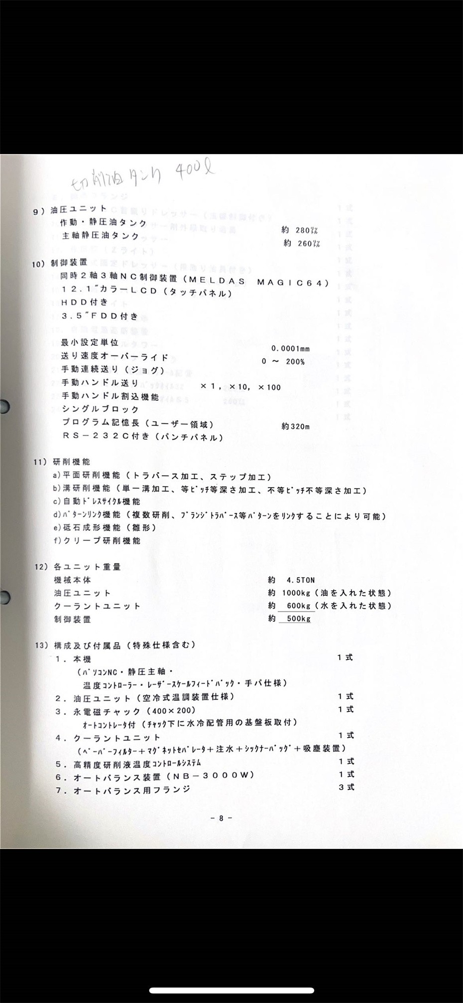 进给速度(液压气缸);17m/min(MAX)